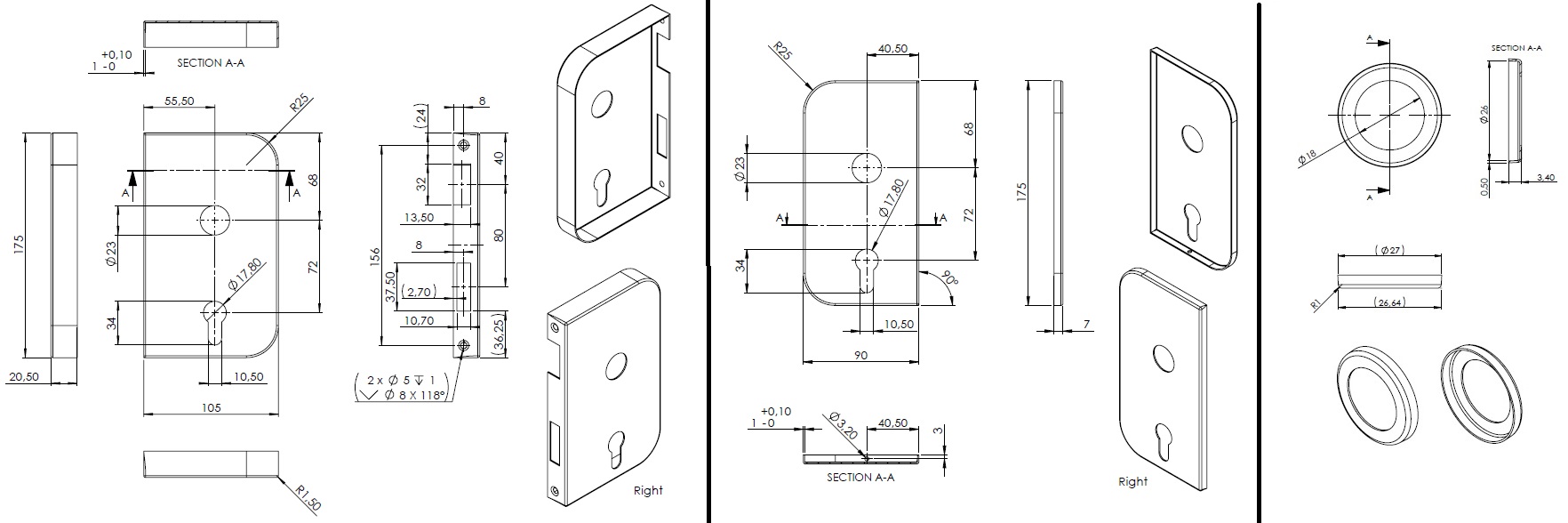 Cover Plates "Robin",W/Handle & Cylinder Hole, Right, Alu- Look