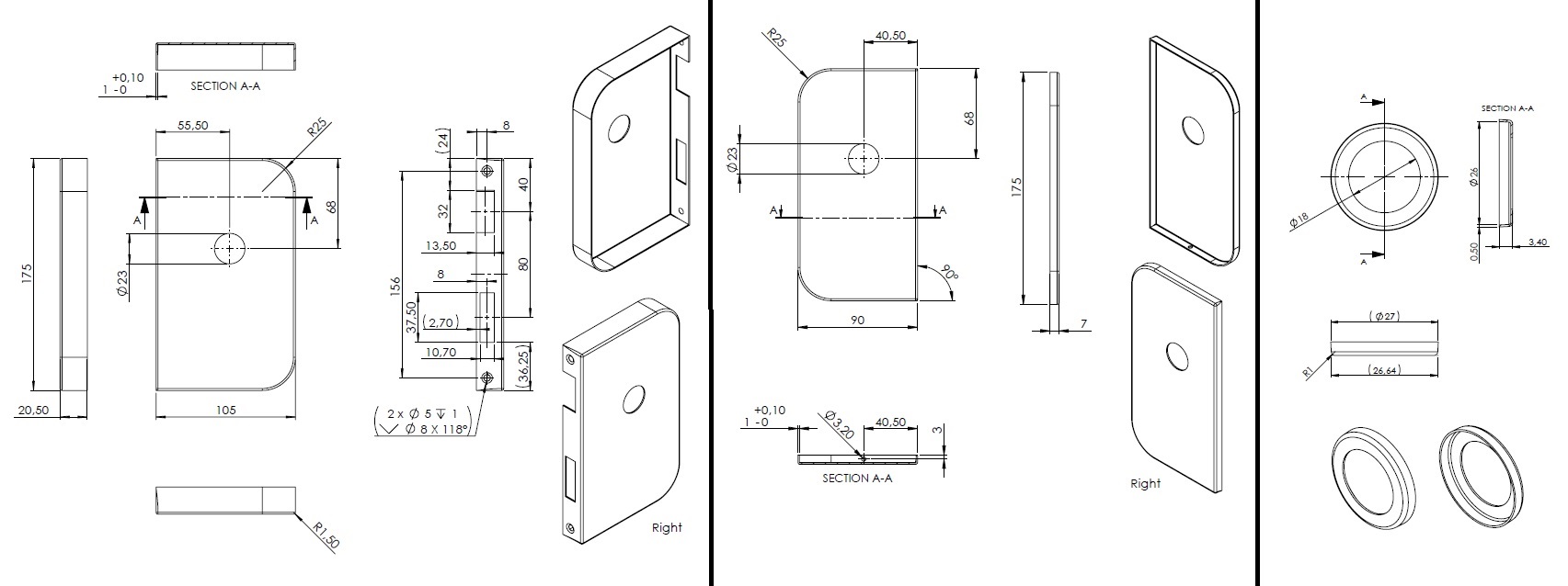Cover Plates "Robin",W/Handle Hole, Right, Alu-Look