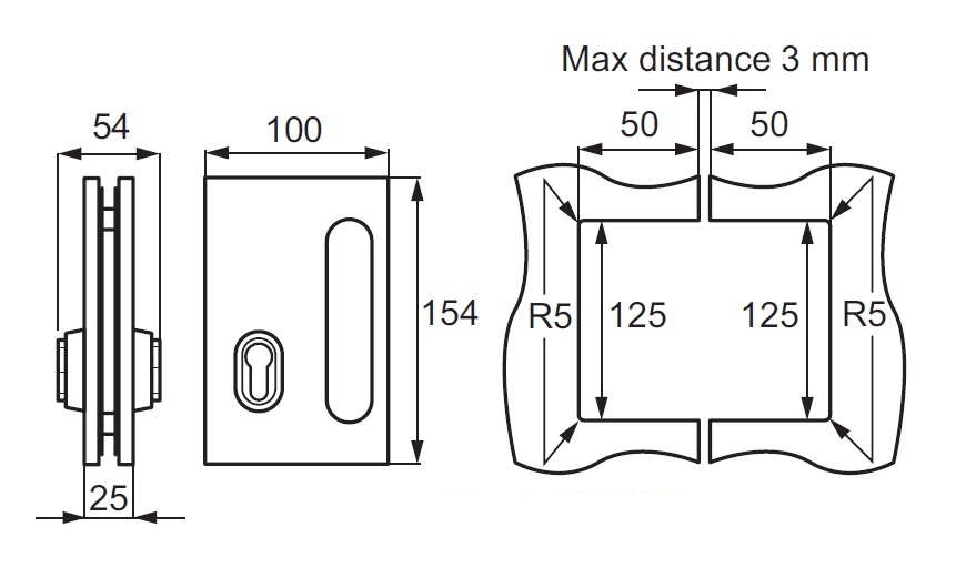 Glass Door Lock 10-12mm, SS304 Brushed, F/Folding & Sliding Doors