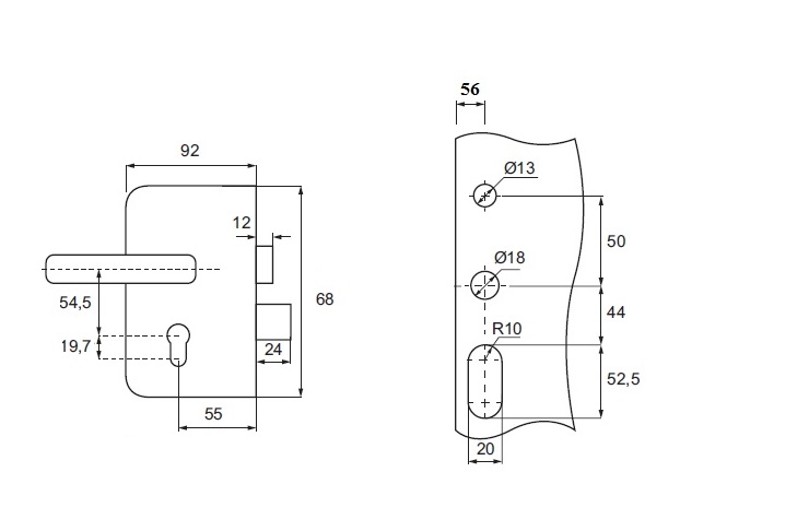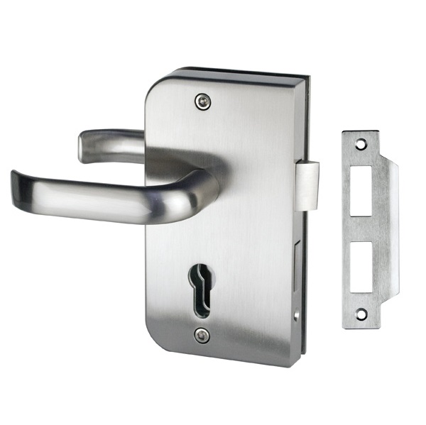 Glass Door Lock "Freja" Left, Small Striker, Zamak SS-Look, Glass 10-18mm, Without Cylinder
