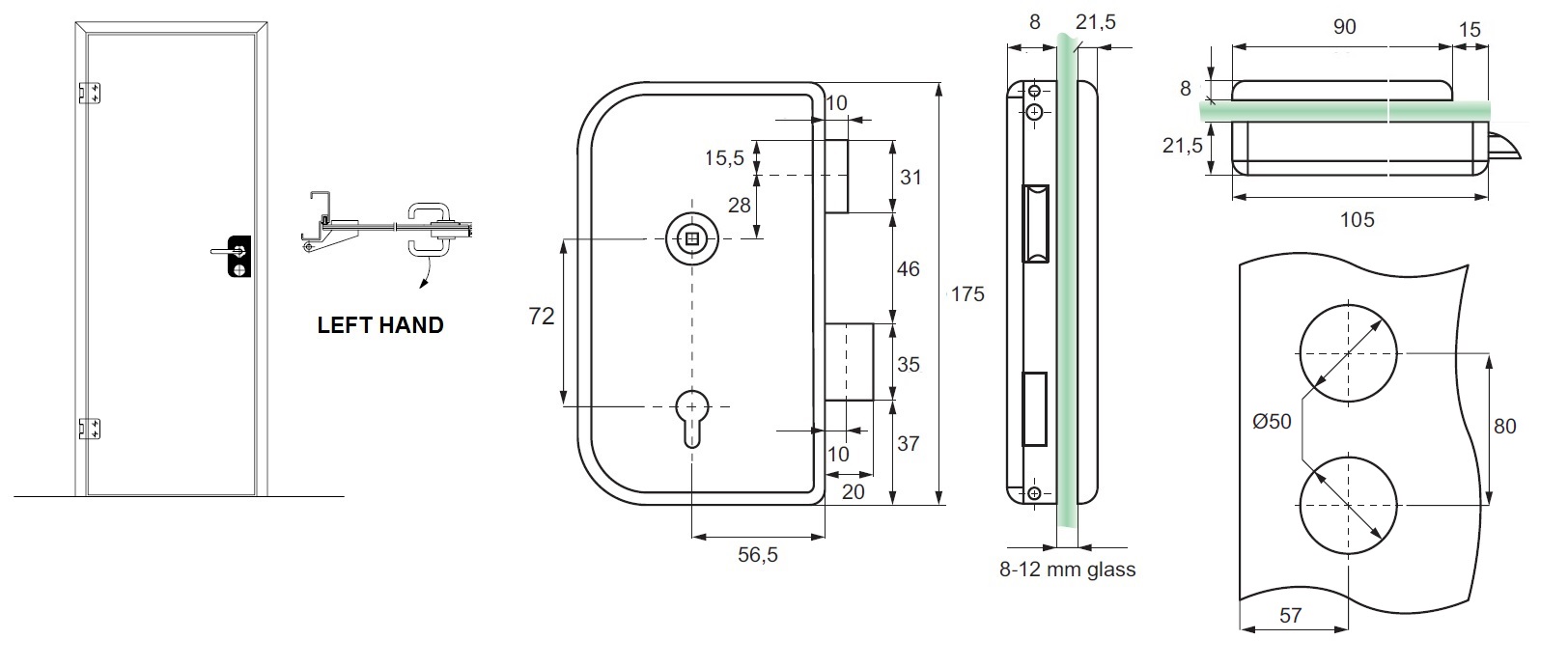 Zamak Lock Body, F/"Robin", Left, Without Cyl. & Handle Hole, 8-12mm Glass
