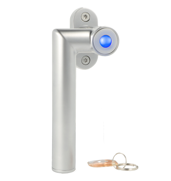 Electronic Lock "E-Win" RFID & Bluetooth, Left, Alu Look, F/Patio Doors and Windows, cc:34mm, F/IOS & Android. Included: 1 Masterkey 14.60.306-8 + 1 Userkey 14.60.306-7 , 1 Adapter F/8mm Spindle - 2 Pcs. Batteries AA/SL760-3.6V Are Not Included (14.04.602-7)