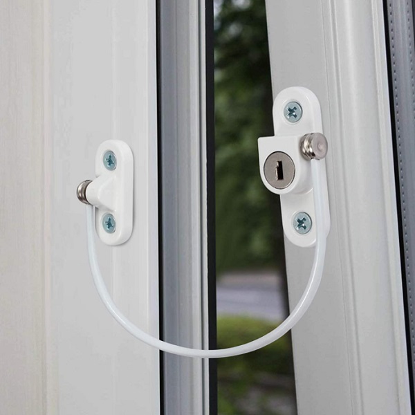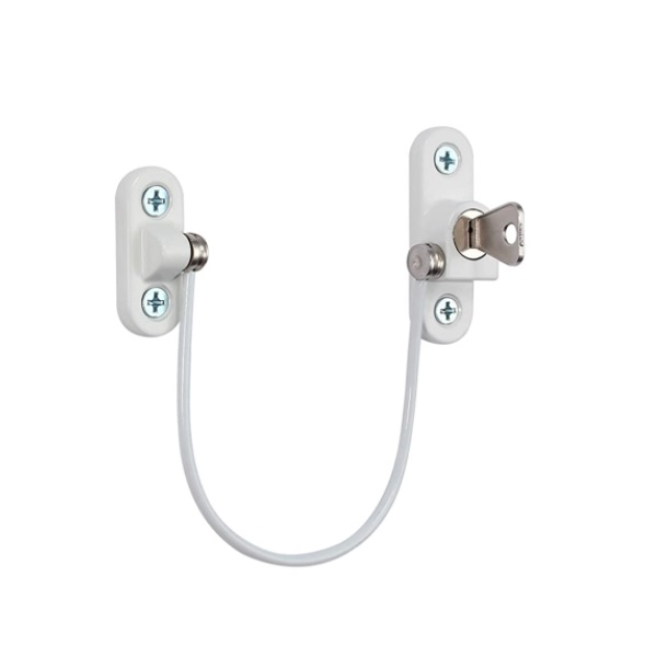 Window Wire Lock, Oval Model, White, W/SS-304 Wire - 190mm , W/Key Alike