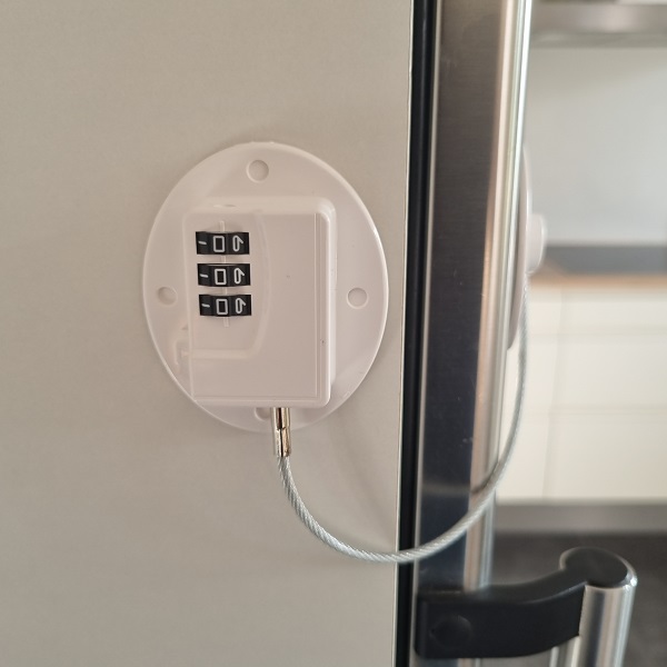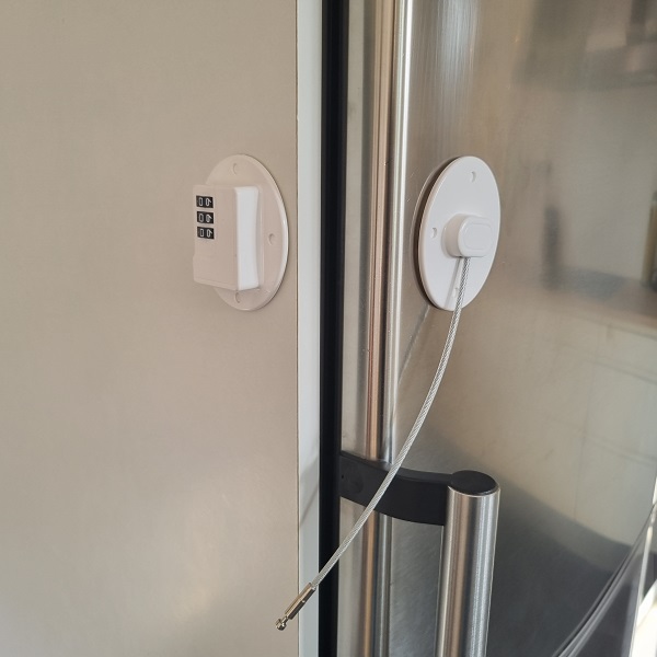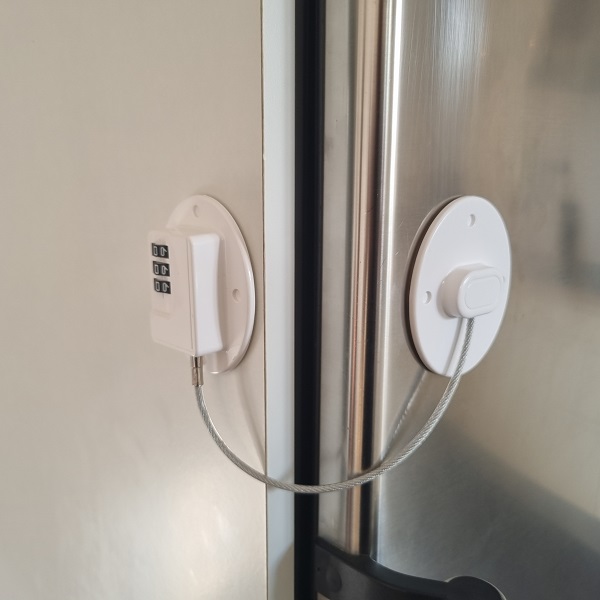 Window Wire Lock, White, W/3-Digits, Adhesive Tape, SS-304 Transp.Wire - 190mm