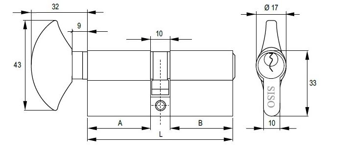 Profile Cyl, NS, 62mm,(26+10+26mm) W/Knob #2, MKS #M3 Yale Key Way, W/3 Metal Keys:SISO, W/Screw Masterkey Shall Be Ordered Separately