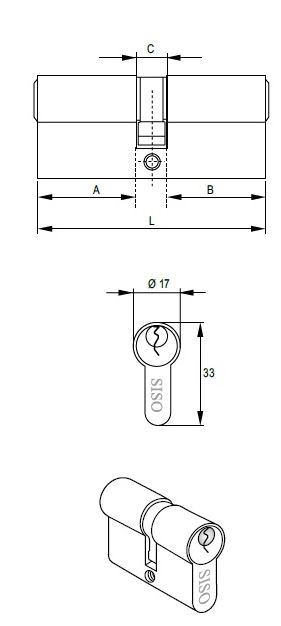 Profile Cylinder, SS-Look, 62mm,(26+10+26mm) KA 1 Yale Key Way, W/3 Metal Keys:SISO ,W/Screw
