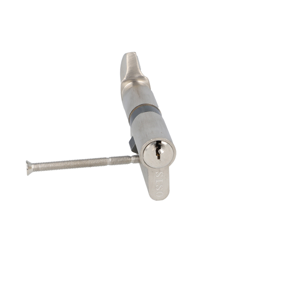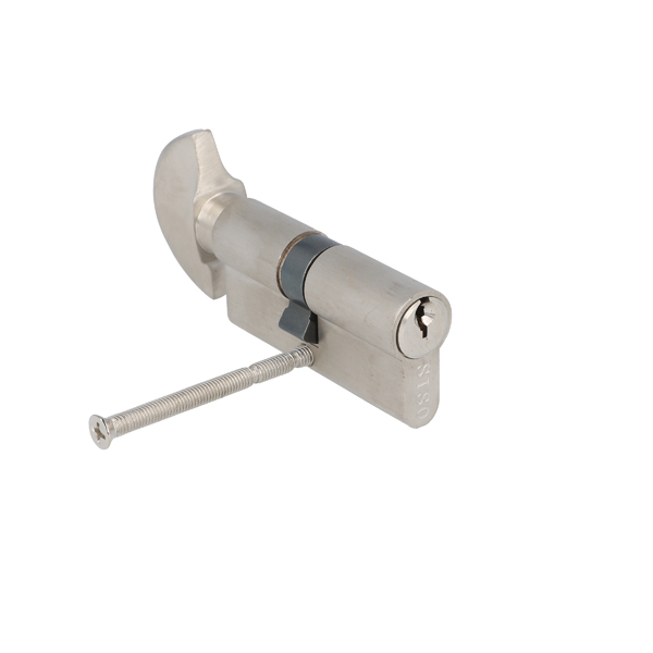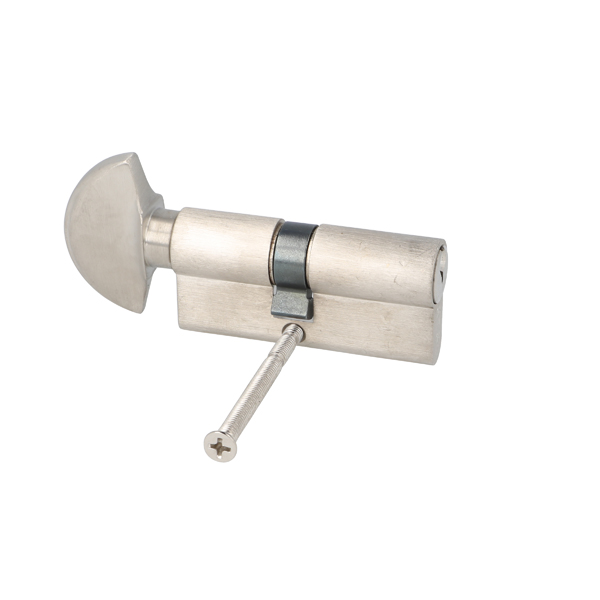 Profile Cylinder, SS-Look, 64.5mm, W/Knob #2 Short Side (30,2+9,3+25mm) W/3 SISO Metal Keys, FAB Key Way, W/Screw, Knob On Short Side 25mm