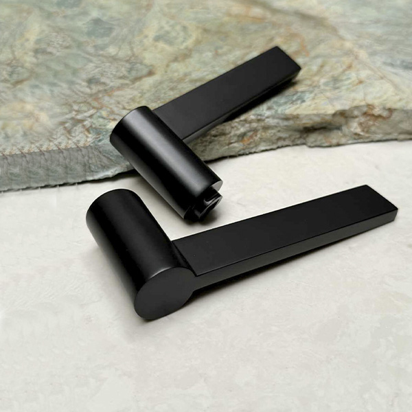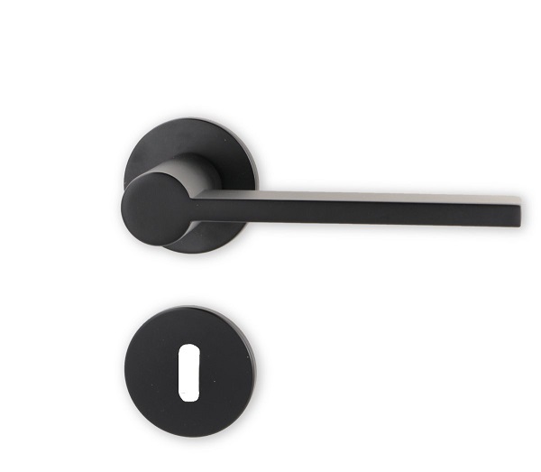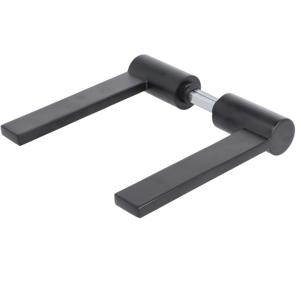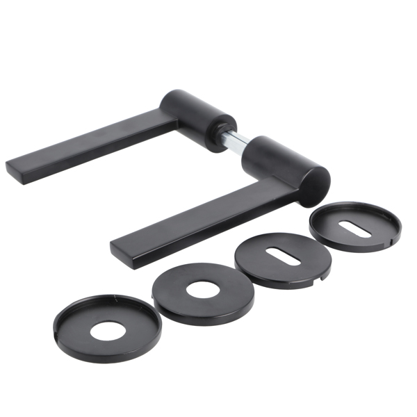 Zamak Door Handle "Rock", Black Finish, 8x8x95mm Split Spindle, Incl. Round Spring Rosettes, Oval Key Hole Escutcheons, Hex Key, Wooden Screws, M4 Connecting Screws & Washers. cc: 38mm. Door Thickness: 38-50mm.
