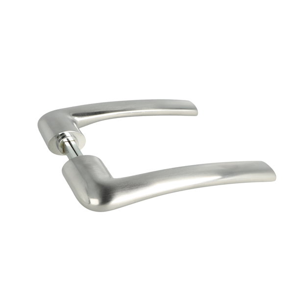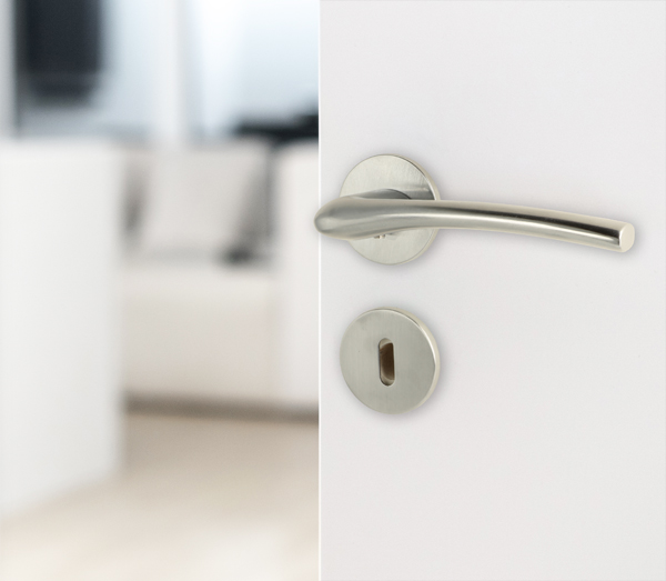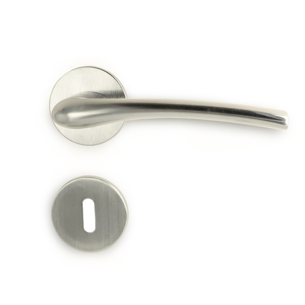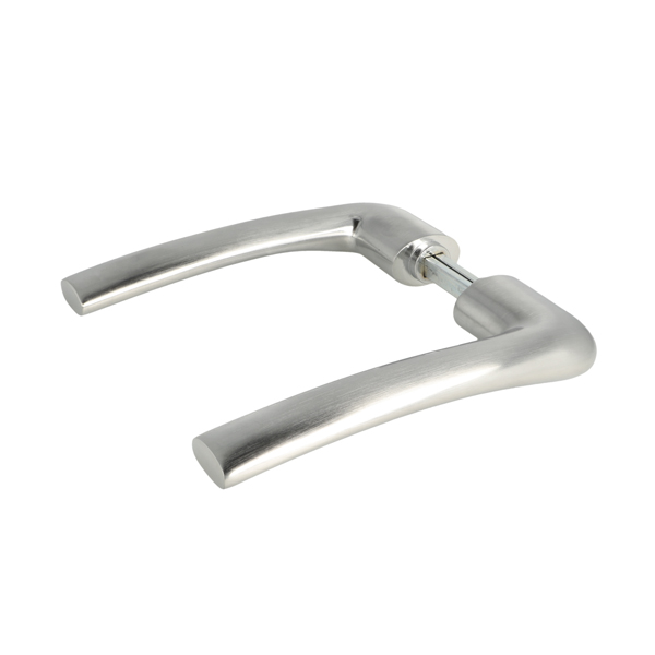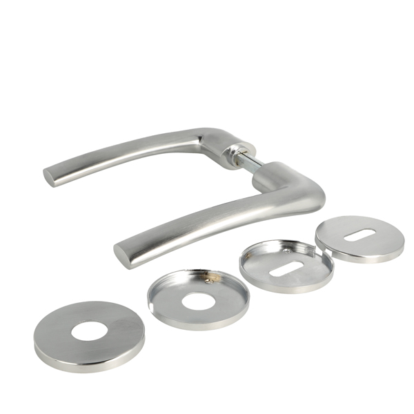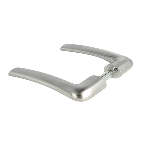 Zamak Door Handle "Trance", SS-Look, 8x8x95mm Split Spindle, Spindle, Incl. Round Spring Rosettes, Oval Key Hole Escutcheons, Hex Key, Wooden Screws, M4 Connecting Screws & Washers. cc: 38mm. Door Thickness: 38-50mm.