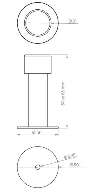 Door Stopper "Stick" SS201 ø22x50mm Black Rubber Head