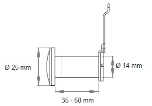 Door Viewer ø14mm, Zamak, BPL, F/Door 35-50mm, W/Cap 180 Degree Angle