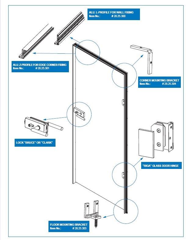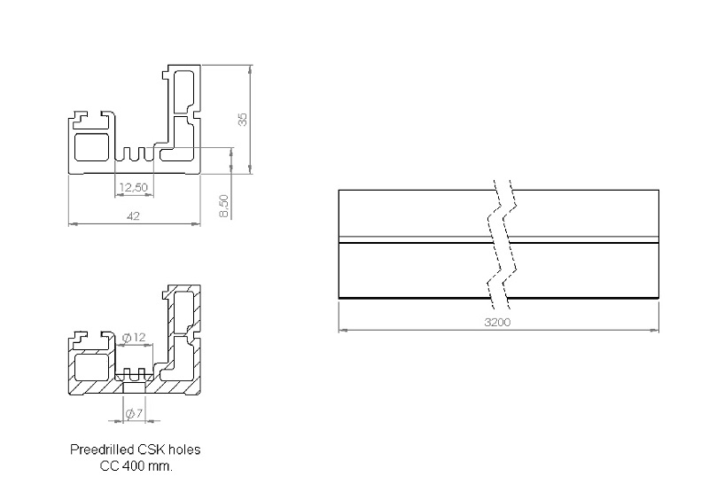Alu. Anodized Glas Wall Profile, 3200mm, F/"Zapp", 8mm Glass