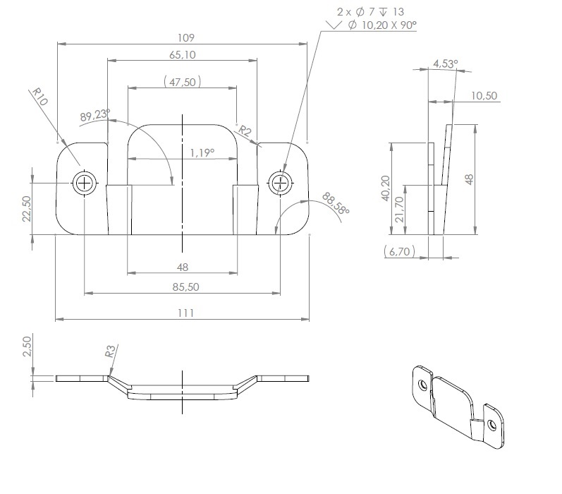 Upholstery Bracket, Steel - 2,5mm, Bright Zinc Plated