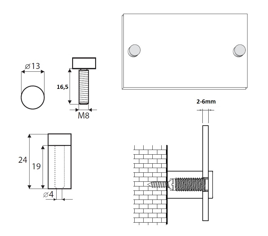 Sign Board Screw ø13x19mm, Brass, Alu Look, W/2 Transparent Washers
