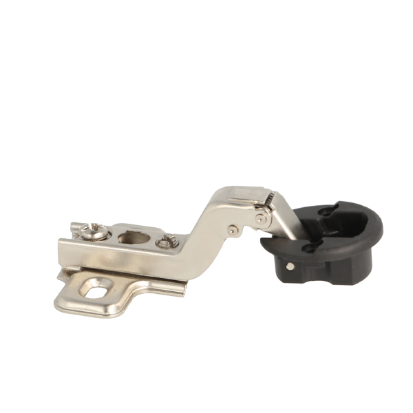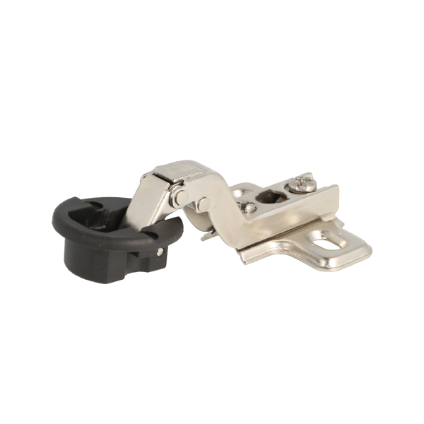 Glass Door Hinge "Mini" NPL/BLK, Inset, W/Plate F/Chipboard Screws, 95DG, 4-6mm Glass, ø26mm Drilling, Mounting Plate H=1,5, Slide-On, Front Cover To be ordered Seperately