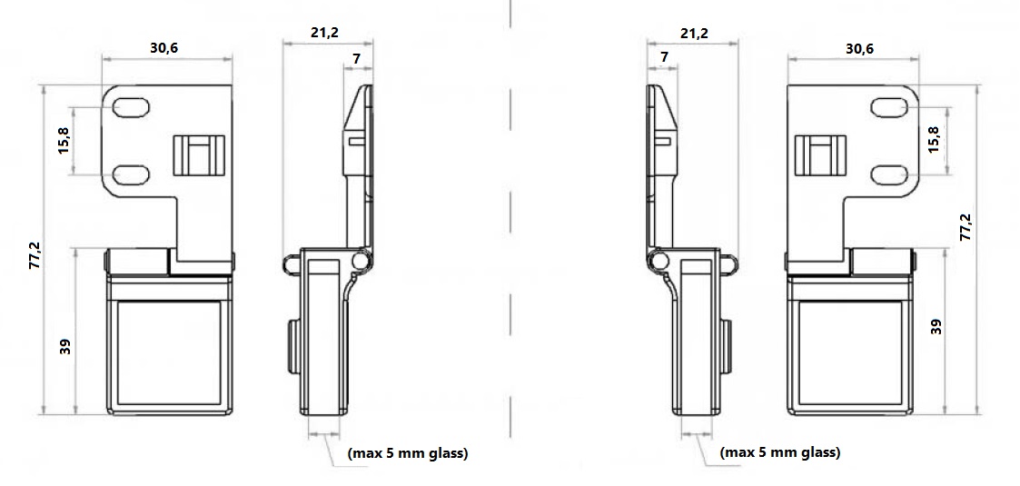 Glass Door Hinge D-13/2, Zamak, Top+Bottom, Chrome Plated