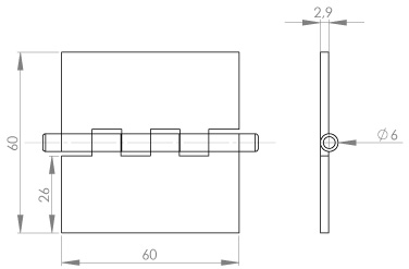Butt Hinge For UV-Glue, 60x60mm, Brass, Chrome Pl, 270 DG