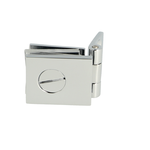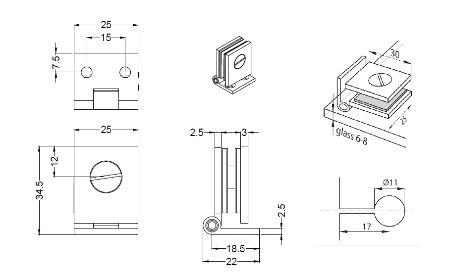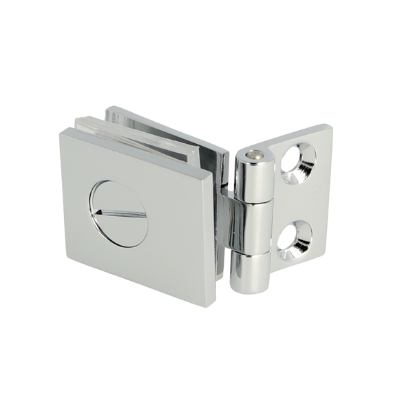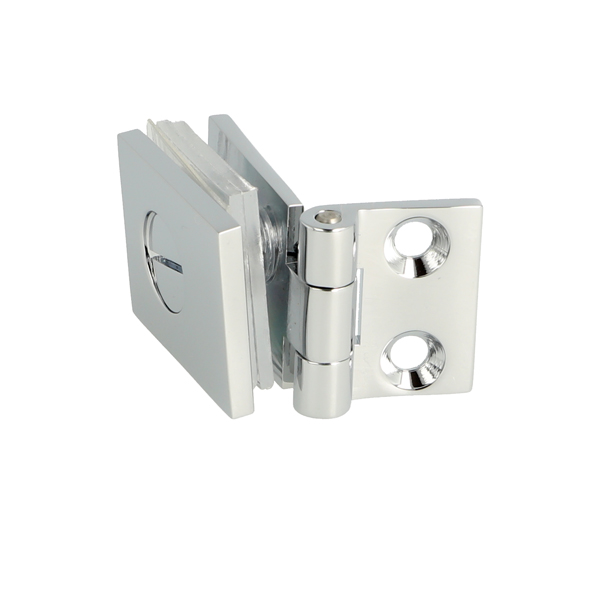 Glass Door Hinge "Bosch" 25x30mm, CPL, Glass/Wood, ø9mm Bore, 6-8mm Glass,3mm Brass Material, Mounting Pl:25x21,5mm, 2 Screws ø4X20mm PZD