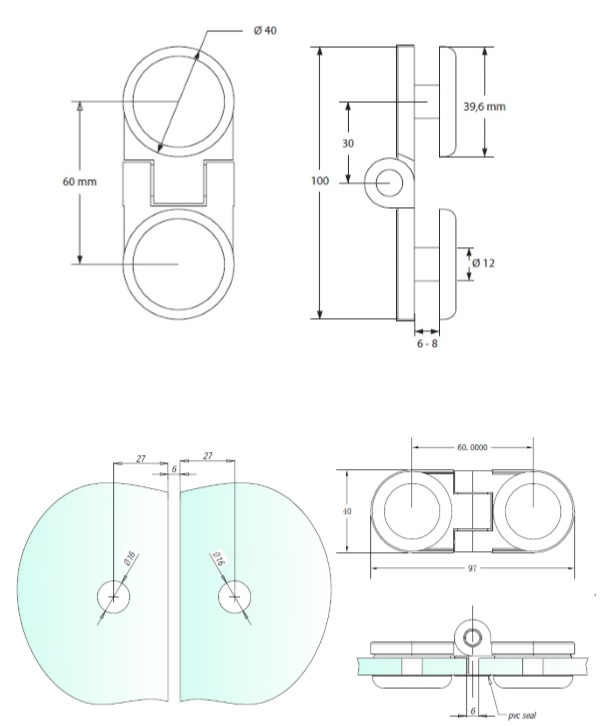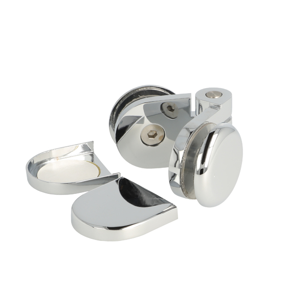 Glass Door Hinge "Rome", Glass/Glass, 180DG, 6-8mm Glass Thickness, Drilling Required ø12mm, Round Shape, Brass Material