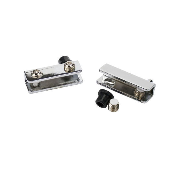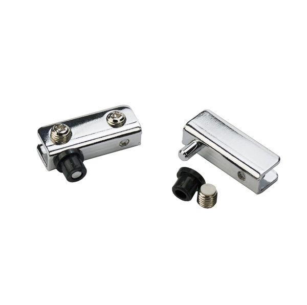 Glass Pivot Hinge No. 11.561, 9mm, Chrome Pl, L+R, 40x15mm F/4-5mm Glass, Metal Screw W/Plastic Tip, ø9 x 7mm Bushing