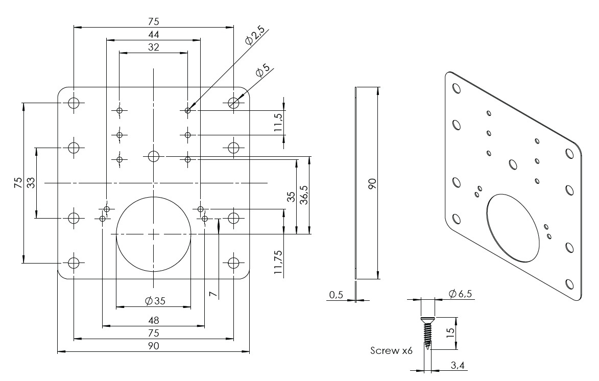 Cabinet Hinge Repair Plate SS430, 90x90x0,69mm, Incl. 6 Pcs of Screws