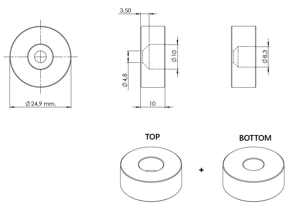 Top & Bottom Turning Blocks F/Pivot Hinge 15.08.192,ø25x10mm