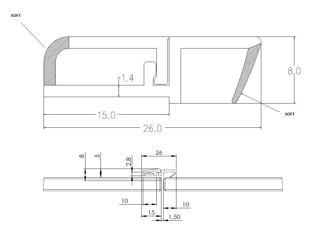 Door Stop Profile PS Hard/TPE Soft, Light Grey, 2600mm