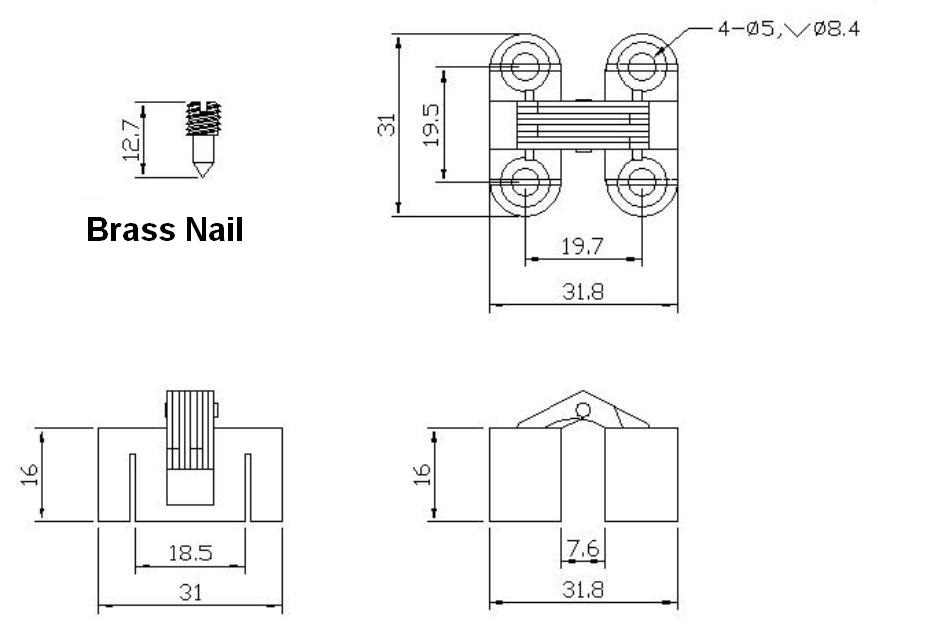 Oval Hinge, Brown Plastic/Steel YZP, 12x31x16mm, W/Brass Screws
