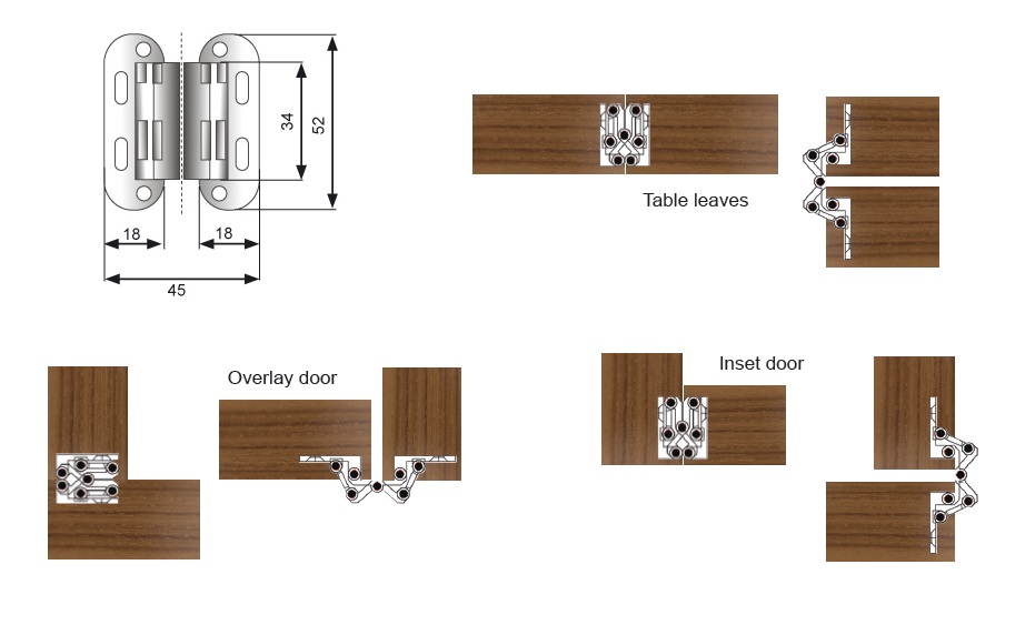 "Sepa" Hinge, 180DG, SS-Look, Zamak, 52x18mm, 11mm Distance Between The Flaps, Stainless Steel Connecting Pins, No Screw F/Minimum 26mm Panels