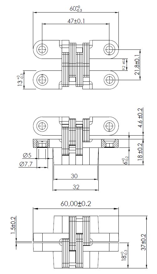 Vici Hinge, Zamak, 60x13mm SS Linkage, SS-Brushed, W/Screws