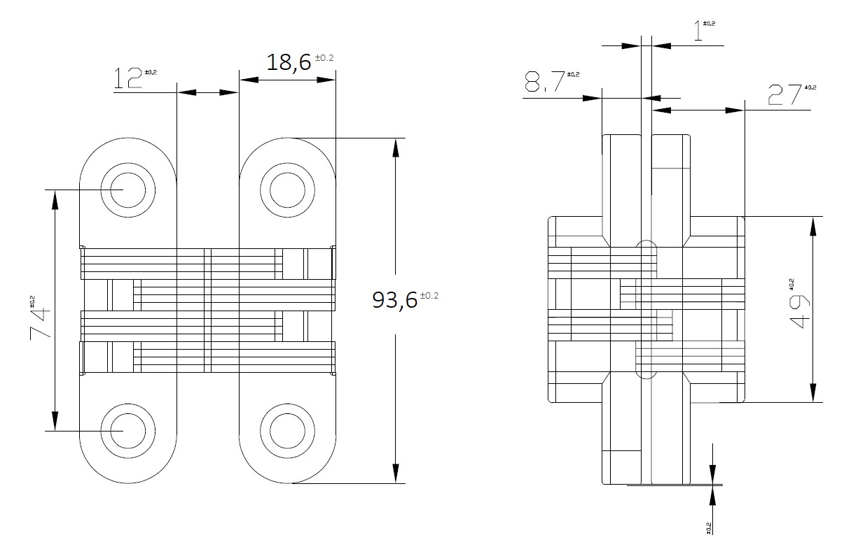Vici Hinge, Zamak, 93,6x18,6mm SS Linkage, Black Finish, W/ Screws
