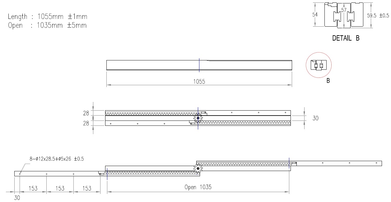 Wooden Slide Split 1055/1035, W/Steel Worm Gear, Durian Wood Closed Lenght:1055mm, Wing Lenght:1055mm, Extended Length: 2282mm, Opening:1035mm, For Center Column Tables