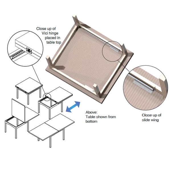 Table Extension 9096/600, F/Folded Top, Opening 375mm, BZP, Open Length:600mm, Closed Length:600mm, Wing:220mm