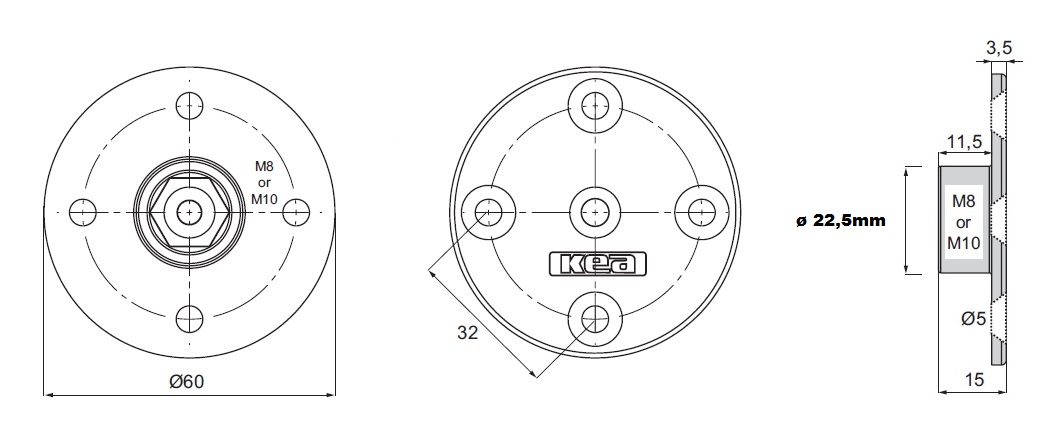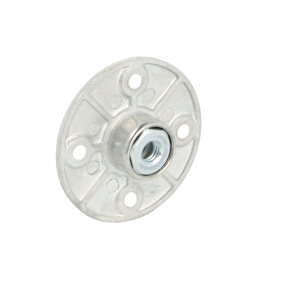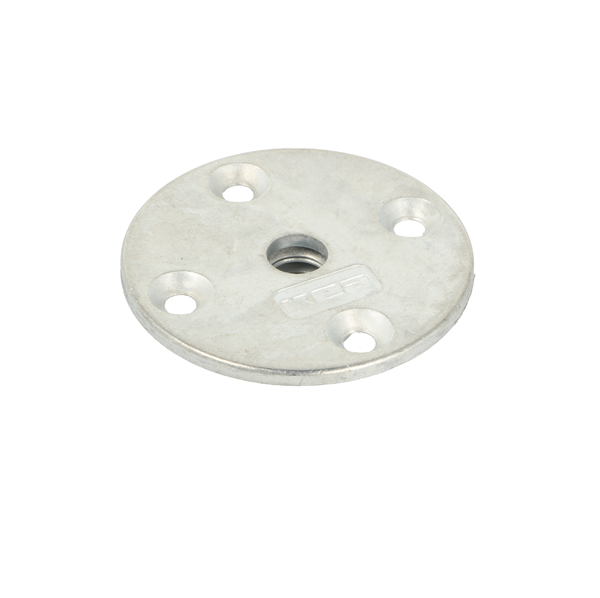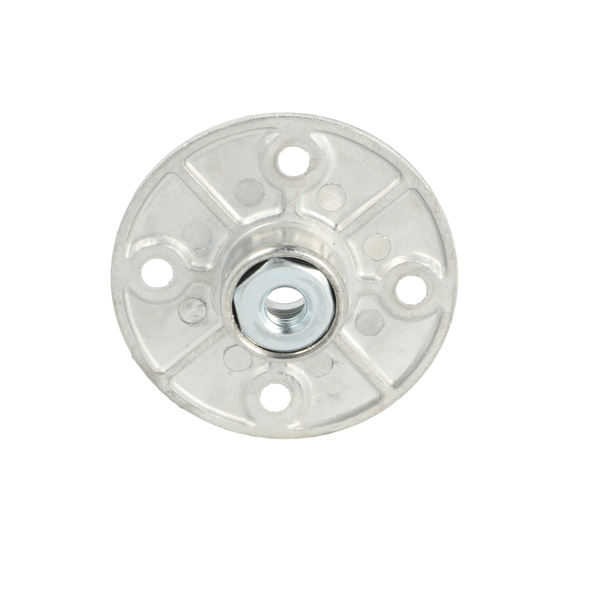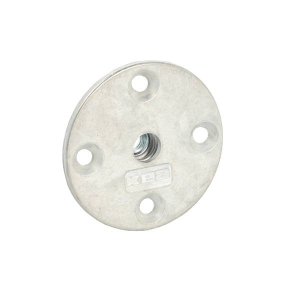 Kea Bushing M8, W/Round Plate ø60mm, cc 32mm, W/4 Screw Holes f/Chipboard Screw 5.0mm, Zamak - Natural