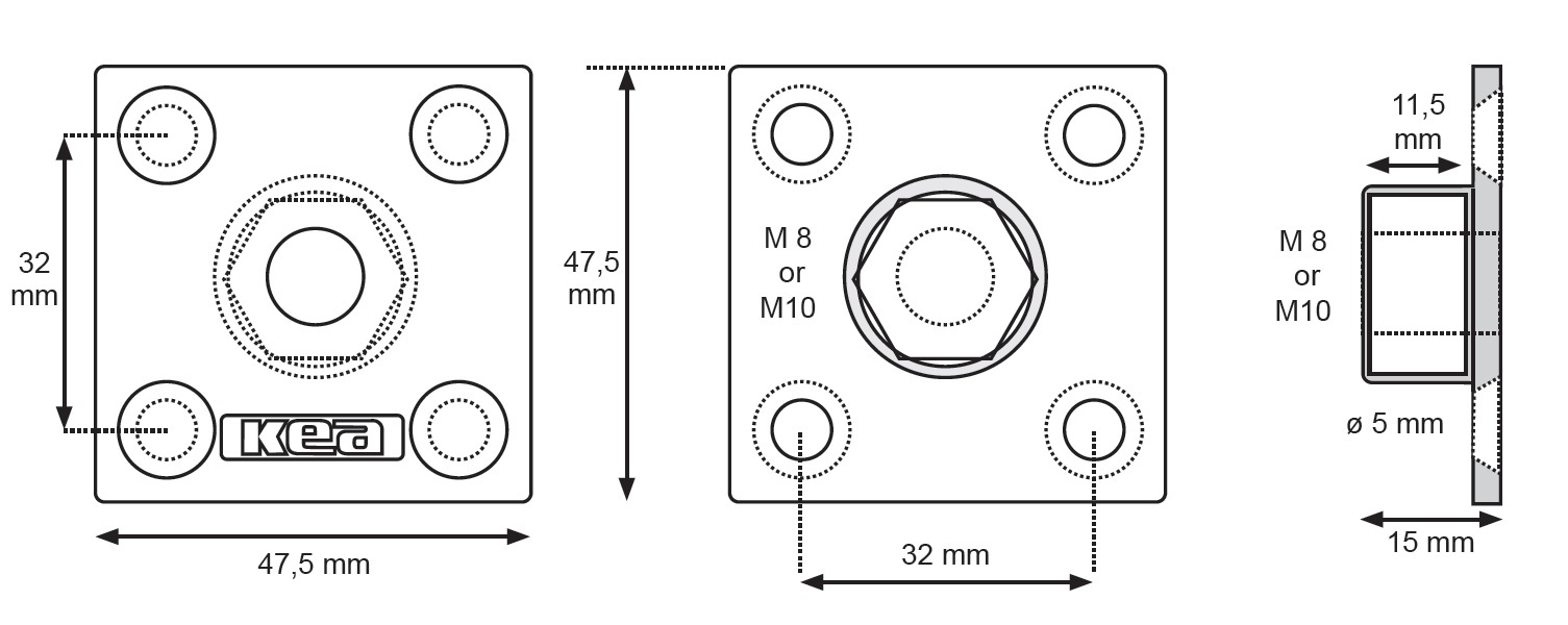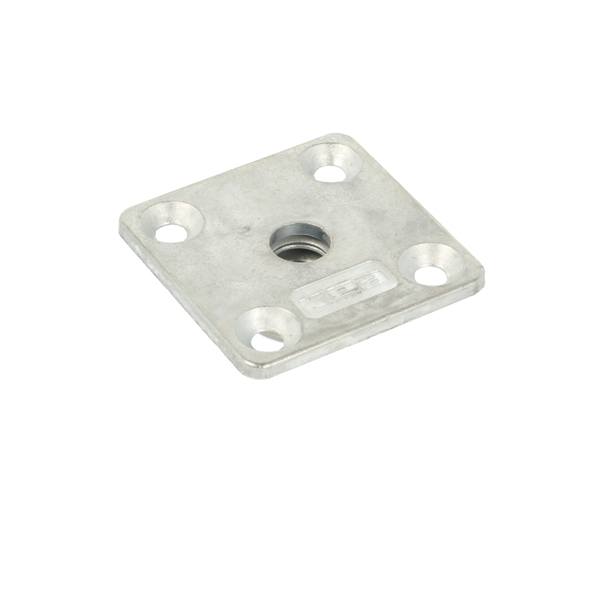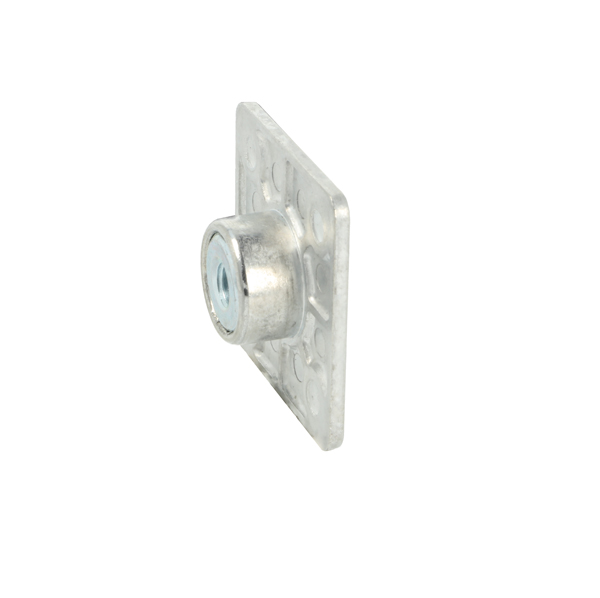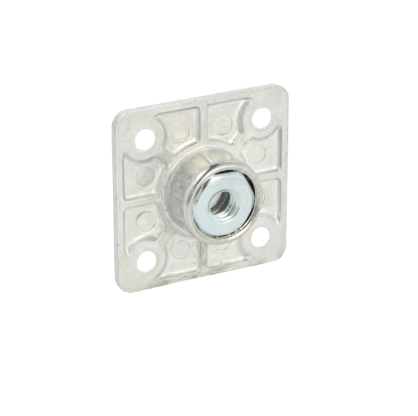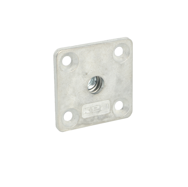 Kea Bushing M8, W/Square Plate, cc 32mm, W/4 Screw Holes f/Chipboard Screw 5.0mm, Zamak - Natural