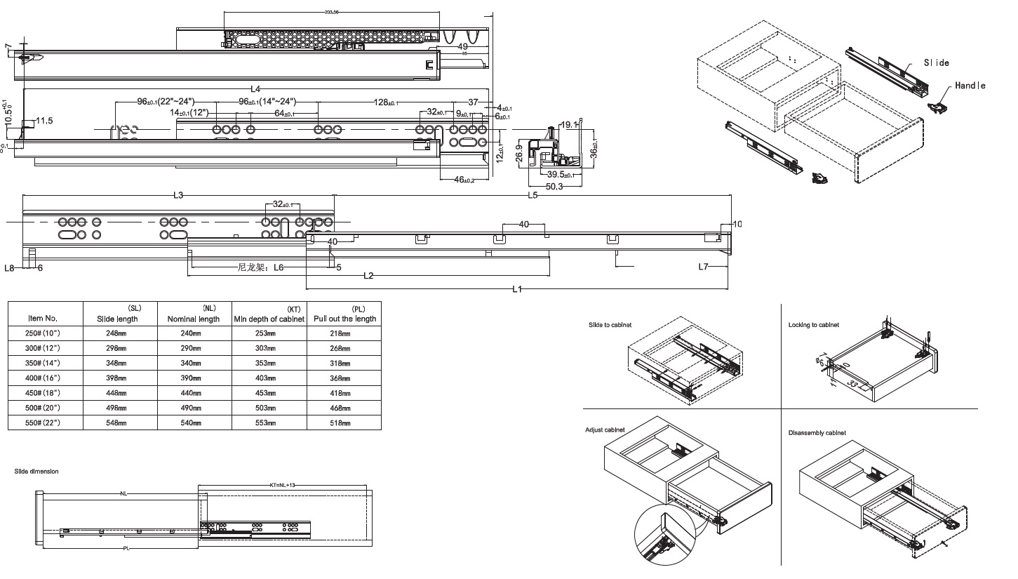 Invis. Full Ext. Slide, Self Closing, Pre-Zinc,325mm,W/Quick Release & Inner Dampers, 5-7 Newton Pull Force