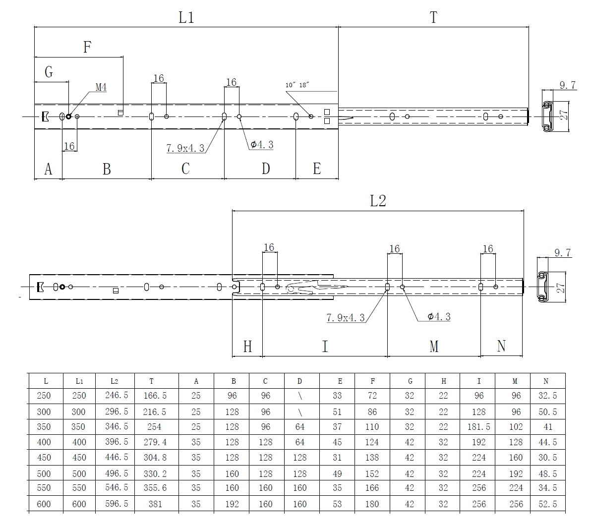 Drawer Slide 8827, 600mm, W/Stop & Release, BZP