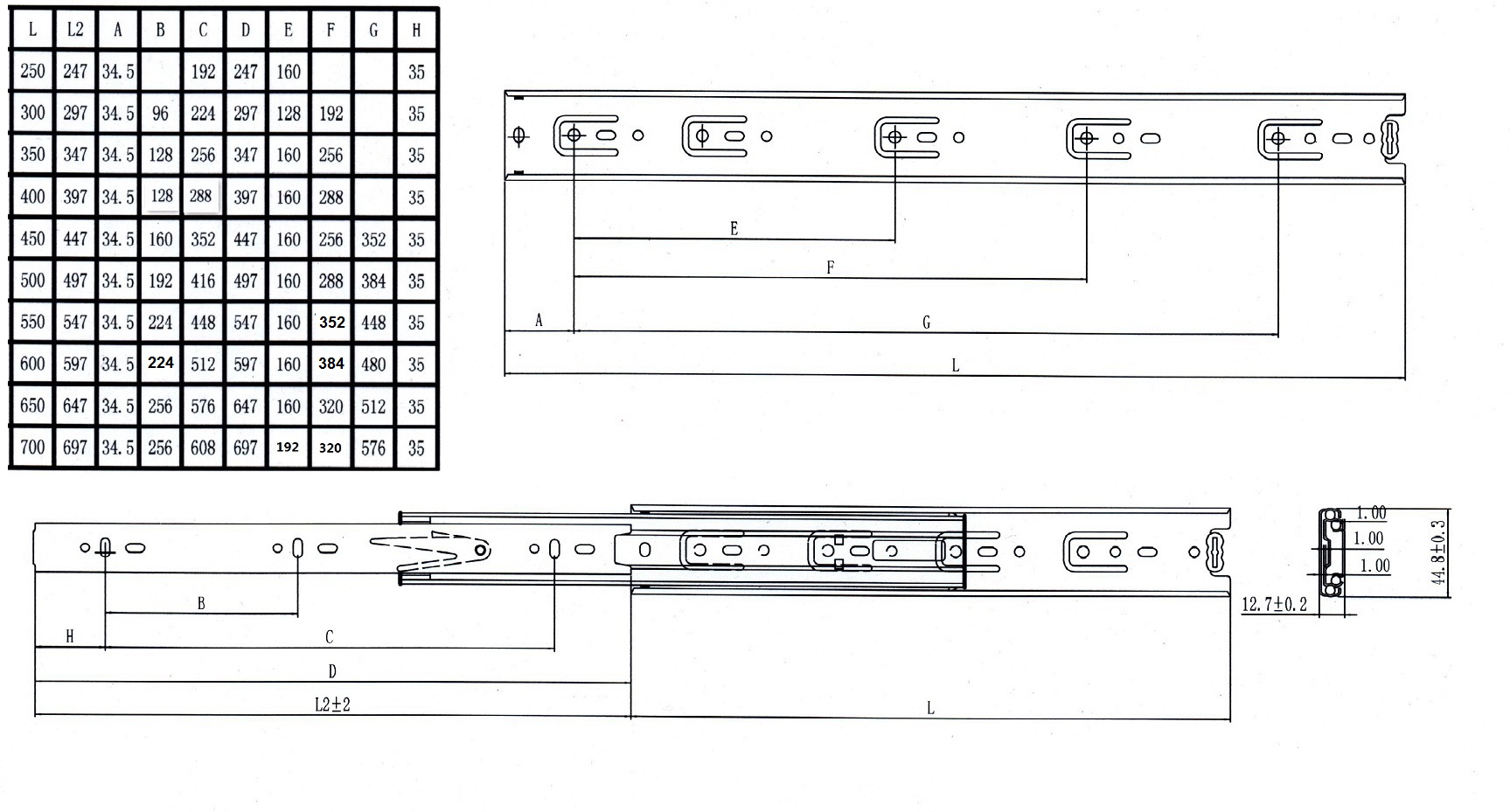 Drawer Slide NJ4500, 500mm Full Extension, Black Zinc Plated
