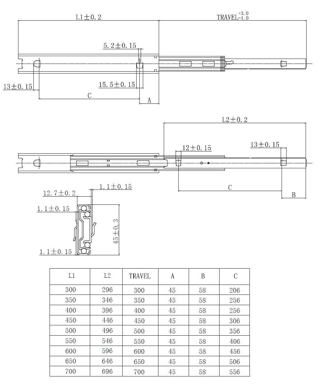Drawer Slide ME4500, 650mm Bayonet Fix, D=506mm, Black ZP