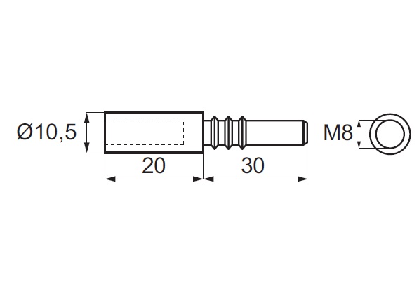 Steel Dowel Fuerte, ø11mm, Female Thread M8, Steel BZP