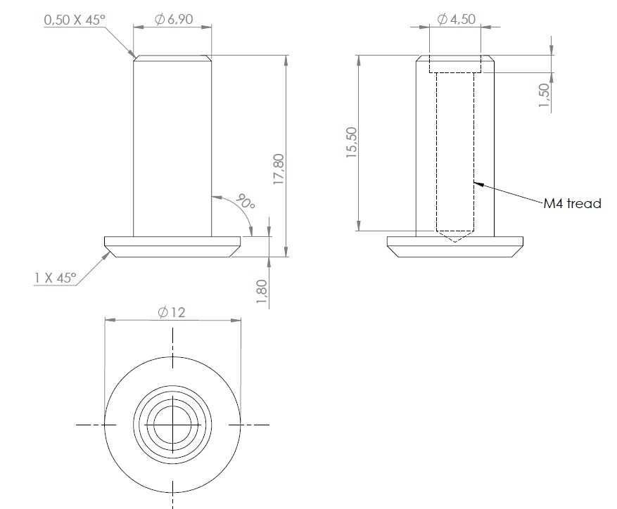Cap Nut F/System S, ø12mm x M4, F/ 16mm Panel, Brass Natural