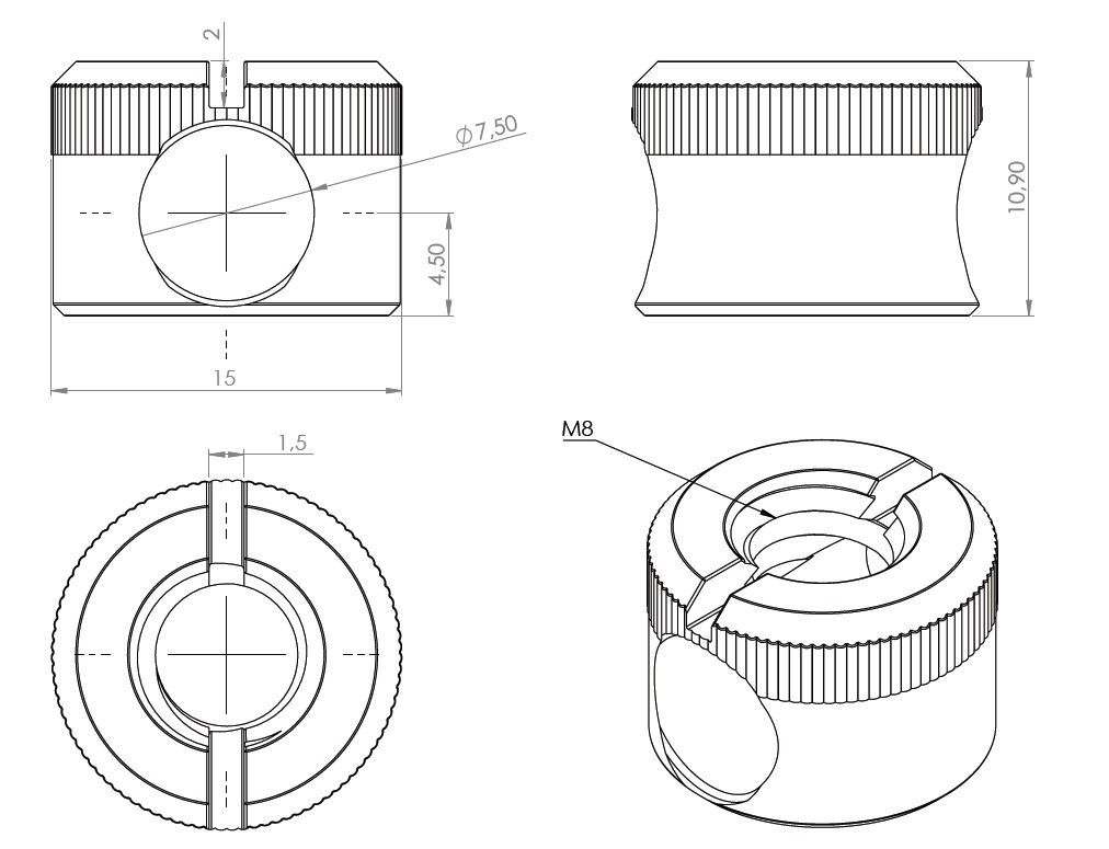 Cylinder F/KD System S, ø15 x 11mm, Steel, BZP, Knurled Top