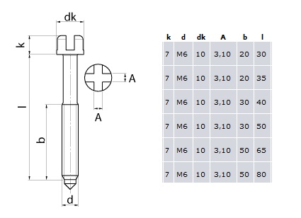 Crown Screw No. 515, M6 x 35mm, Pointed, Steel BZP