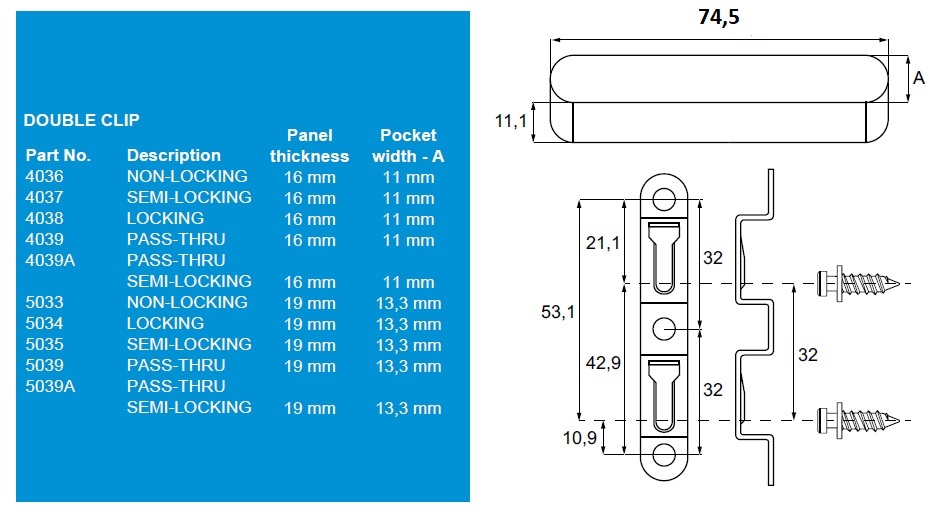 "INVISIO" Double Clip #5039, Non Locking, Pass-Thru