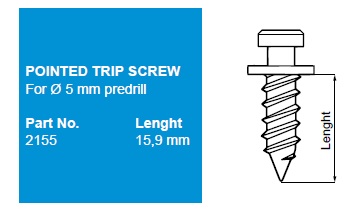 Shoulder Screw #2155 F/INVISIO,BZP,15.9mm Pointed, Bore 5mm