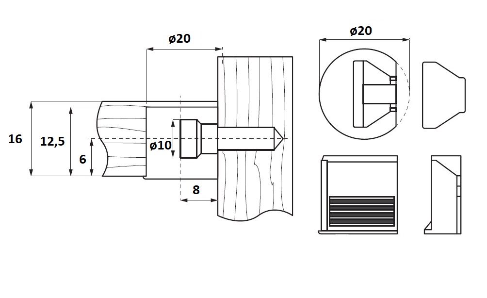 Snapfix No.16-02, Bore ø20mm, Brown PA,No Screw,W/16mm Panel