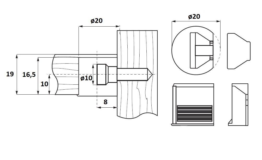 Snapfix No.19-02, Bore ø20mm, Black PA,No Screw,W/19mm Panel