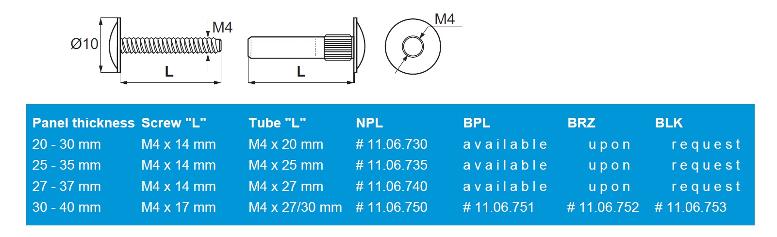 Connecting Screw, 30-40mm, Bore 5mm, M4, Steel Nickel Pl.
