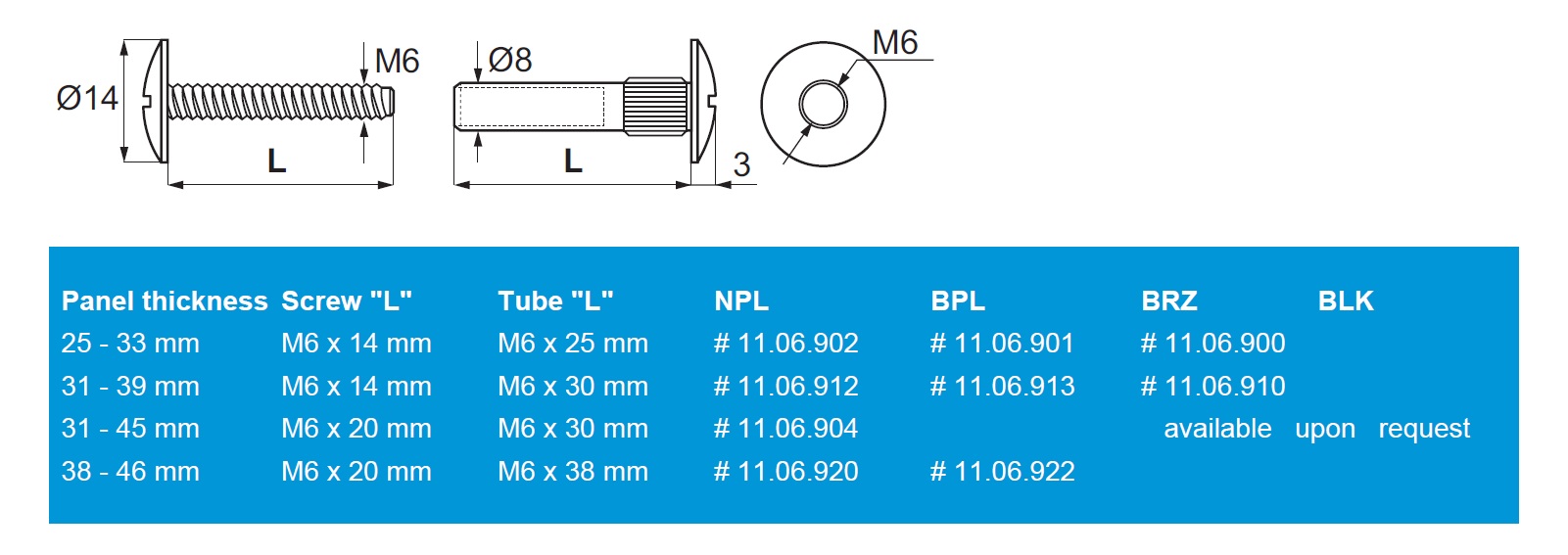 Connecting Screw, 31-39mm, Bore 8mm, M6, Steel Nickel Pl.