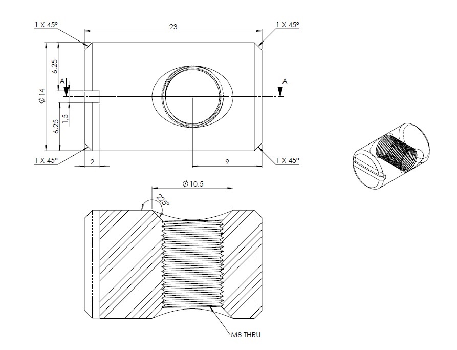 Cross Dowel ø14x23mm(14+9), M8, Steel, Bright Zinc Plated